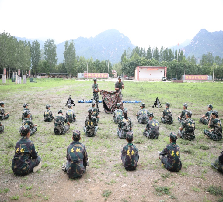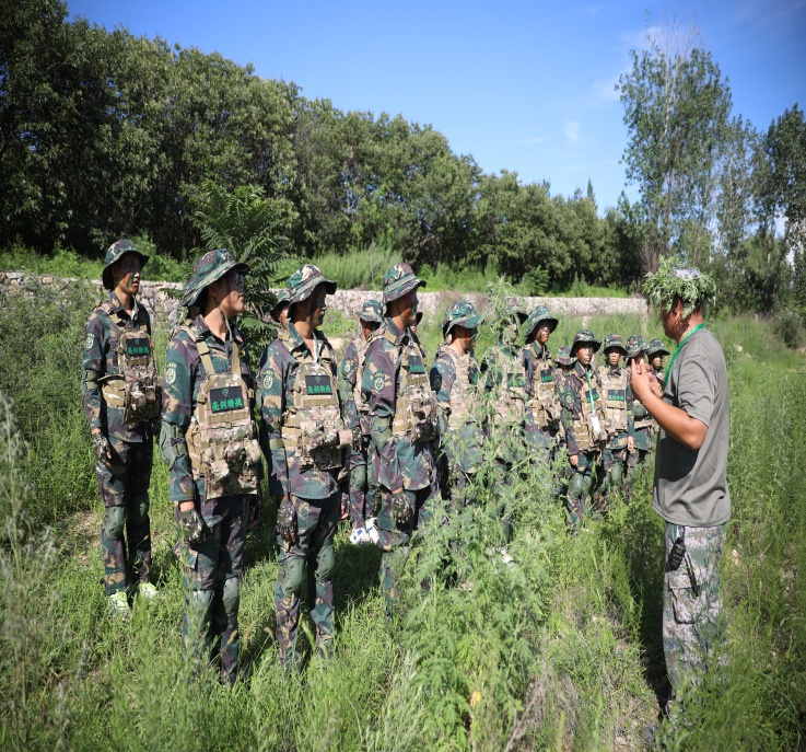 | 下午 | 形体训练:形体训练与风采展示,制定组名、组呼,锻炼精、气、神。 匍匐训练:进行高低姿匍匐训练,掌握基本技能,遇到特殊情况可以自救! |