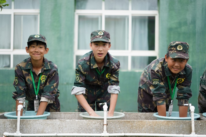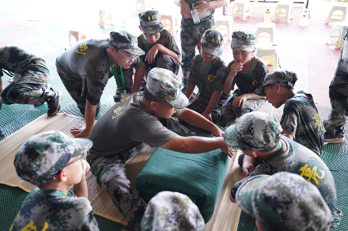 | 早晨 | 集合出操:准时起床,强化孩子时间观念,改变在家睡懒觉的不良习惯。接力赛为今天的特训做好热身活动。 整理内务:被子叠成豆腐块,标准决定水准,原来被子也可以叠得如此漂亮。 |