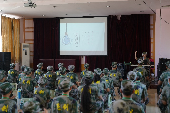 | 上午 | 开营仪式:统一着装列队,敬礼、奏国歌、授旗、领导致词、教官代表发言、亮剑营员代表发言同时学习营规。 |